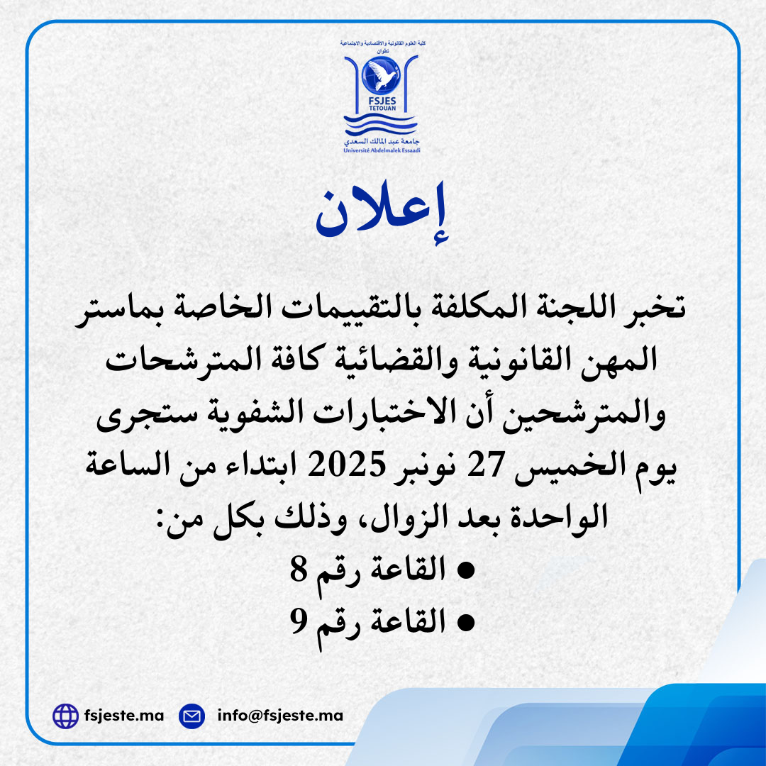 نتائج الانتقاء ماستر كلية العلوم القانونية والاقتصادية والاجتماعية تطوان 2025-2026